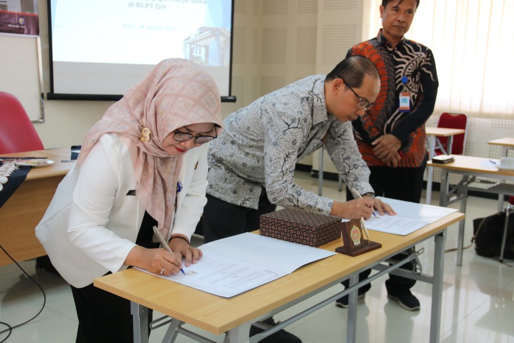 Rabu, 28 Agustus 2024 Dilaksanakan penjajagan dan penandatanganan kerja sama antara BLPT Yogyakarta dengan Balai Besar Pengembangan Penjamin Mutu Pendidikan Vokasi Bidang Mesin dan Teknik Industri (BBPPMPV BMTI). Kegiatan ini ditujukan untuk mendapatkan percepatan update skill / peningkatan komptensi untuk Guru dan Tenaga Pendidik lainnya khususnya di Wilayah Pemda DIY.