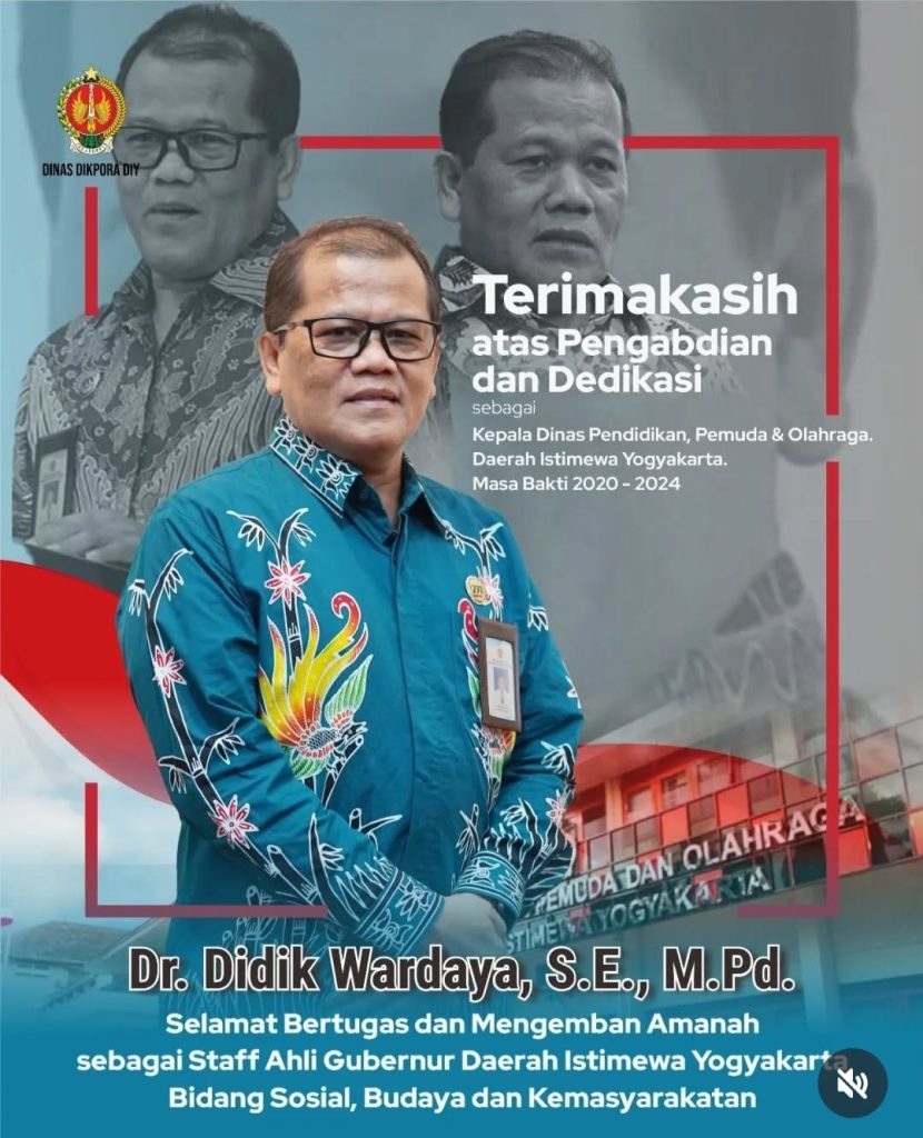 Selamat Bertugas dan Mengemban Amanah Baru Bapak Dr. Didik Wardaya, SE., M.Pd. sebagai Staf Ahli Gubernur Daerah Istimewa Yogyakarta Bidang Sosial, Budaya dan Kemasyarakatan.